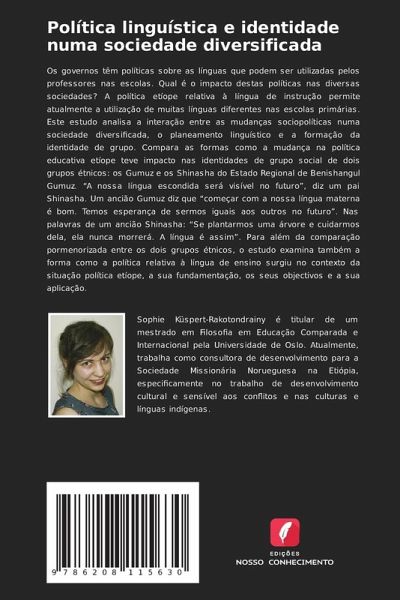 Os governos têm políticas sobre as línguas que podem ser utilizadas pelos professores nas escolas. Qual é o impacto destas políticas nas diversas sociedades? A política etíope relativa à língua de instrução permite atualmente a utilização de muitas línguas diferentes nas escolas primárias. Este estudo analisa a interação entre as mudanças sociopolíticas numa sociedade diversificada, o planeamento linguístico e a formação da identidade de grupo. Compara as formas como a mudança na política educativa etíope teve impacto nas identidades de grupo social de dois grupos étnicos: os Gumuz e os Shinasha do Estado Regional de Benishangul Gumuz. ¿A nossa língua escondida será visível no futurö, diz um pai Shinasha. Um ancião Gumuz diz que ¿começar com a nossa língua materna é bom. Temos esperança de sermos iguais aos outros no futurö. Nas palavras de um ancião Shinasha: ¿Se plantarmos uma árvore e cuidarmos dela, ela nunca morrerá. A língua é assim¿. Para além da comparação pormenorizada entre os dois grupos étnicos, o estudo examina também a forma como a política relativa à língua de ensino surgiu no contexto da situação política etíope, a sua fundamentação, os seus objectivos e a sua aplicação.