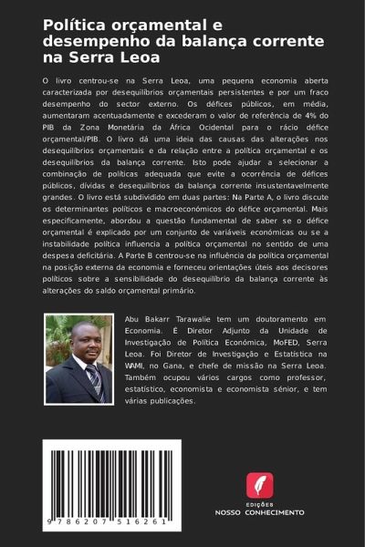 O livro centrou-se na Serra Leoa, uma pequena economia aberta caracterizada por desequilíbrios orçamentais persistentes e por um fraco desempenho do sector externo. Os défices públicos, em média, aumentaram acentuadamente e excederam o valor de referência de 4% do PIB da Zona Monetária da África Ocidental para o rácio défice orçamental/PIB. O livro dá uma ideia das causas das alterações nos desequilíbrios orçamentais e da relação entre a política orçamental e os desequilíbrios da balança corrente. Isto pode ajudar a selecionar a combinação de políticas adequada que evite a ocorrência de défices públicos, dívidas e desequilíbrios da balança corrente insustentavelmente grandes. O livro está subdividido em duas partes: Na Parte A, o livro discute os determinantes políticos e macroeconómicos do défice orçamental. Mais especificamente, abordou a questão fundamental de saber se o défice orçamental é explicado por um conjunto de variáveis económicas ou se a instabilidade política influencia a política orçamental no sentido de uma despesa deficitária. A Parte B centrou-se na influência da política orçamental na posição externa da economia e forneceu orientações úteis aos decisores políticos sobre a sensibilidade do desequilíbrio da balança corrente às alterações do saldo orçamental primário.
