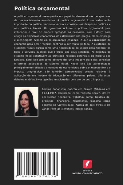 A política orçamental desempenha um papel fundamental nas perspectivas de desenvolvimento económico. A política orçamental é um instrumento importante da política macroeconómica e consiste nas despesas públicas e nas políticas fiscais. Os governos utilizam a política orçamental para influenciar o nível de procura agregada na economia, num esforço para atingir os objectivos económicos de estabilidade dos preços, pleno emprego e crescimento económico. O argumento essencial é que a capacidade da economia para gerar receitas continua a ser muito limitada. A existência de sistemas fiscais surgiu como uma necessidade do Estado para financiar os bens e serviços públicos que oferece aos seus cidadãos. As receitas do sistema fiscal constituem as principais receitas potenciais da maioria dos Estados. Este livro tem como objetivo dar uma imagem clara dos conceitos e termos associados ao sistema fiscal. Neste livro são apresentadas principalmente reflexões e estudos de economistas sobre o imposto fixo e o imposto progressivo, são também apresentadas provas relativas à aplicação de um modelo de tributação em diferentes países, diferentes debates e várias investigações relacionadas com um ou outro imposto.