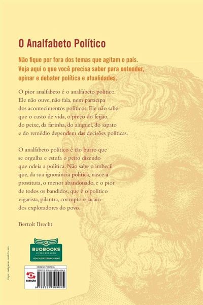 Não fique por fora dos temas que agitam o país. Veja aqui o que você precisa saber para entender,opinar e debater política e atualidades. O pior analfabeto é o analfabeto político. Ele não ouve, não fala, nem participa dos acontecimentos políticos. Ele não sabe que o custo de vida, o preço do feijão, do peixe, da farinha, do aluguel, do sapato e do remédio dependem das decisões políticas. O analfabeto político é tão burro que se orgulha e estufa o peito dizendo que odeia a política. Não sabe o imbecil que, da sua ignorância política, nasce a prostituta, o menor abandonado, e o pior de todos os…mehr