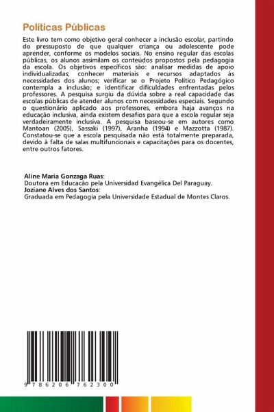 Este livro tem como objetivo geral conhecer a inclusão escolar, partindo do pressuposto de que qualquer criança ou adolescente pode aprender, conforme os modelos sociais. No ensino regular das escolas públicas, os alunos assimilam os conteúdos propostos pela pedagogia da escola. Os objetivos específicos são: analisar medidas de apoio individualizadas; conhecer materiais e recursos adaptados às necessidades dos alunos; verificar se o Projeto Político Pedagógico contempla a inclusão; e identificar dificuldades enfrentadas pelos professores. A pesquisa surgiu da dúvida sobre a real capacidade das escolas públicas de atender alunos com necessidades especiais. Segundo o questionário aplicado aos professores, embora haja avanços na educação inclusiva, ainda existem desafios para que a escola regular seja verdadeiramente inclusiva. A pesquisa baseou-se em autores como Mantoan (2005), Sassaki (1997), Aranha (1994) e Mazzotta (1987). Constatou-se que a escola pesquisada não está totalmente preparada, devido à falta de salas multifuncionais e capacitações para os docentes, entre outros fatores.