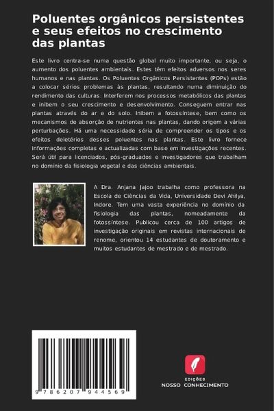 Este livro centra-se numa questão global muito importante, ou seja, o aumento dos poluentes ambientais. Estes têm efeitos adversos nos seres humanos e nas plantas. Os Poluentes Orgânicos Persistentes (POPs) estão a colocar sérios problemas às plantas, resultando numa diminuição do rendimento das culturas. Interferem nos processos metabólicos das plantas e inibem o seu crescimento e desenvolvimento. Conseguem entrar nas plantas através do ar e do solo. Inibem a fotossíntese, bem como os mecanismos de absorção de nutrientes nas plantas, dando origem a várias perturbações. Há uma necessidade séria de compreender os tipos e os efeitos deletérios desses poluentes nas plantas. Este livro fornece informações completas e actualizadas com base em investigações recentes. Será útil para licenciados, pós-graduados e investigadores que trabalham no domínio da fisiologia vegetal e das ciências ambientais.