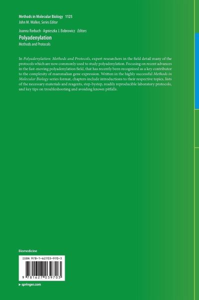 In Polyadenylation: Methods and Protocols , expert researchers in the field detail many of the protocols which are now commonly used to study polyadenylation. Focusing on recent advances in the fast-moving polyadenylation filed, that has recently been recognized as a key contributor to the complexity of mammalian gene expression. Written in the highly successful Methods in Molecular Biology series format, chapters include introductions to their respective topics, lists of the necessary materials and reagents, step-by-step, readily reproducible laboratory protocols and key tips on troubleshooting and avoiding known pitfalls.