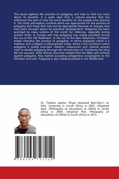 This study explores the practice of polygamy and tries to find out more about its benefits. It is quite clear that a cultural practice that has withstood the test of time has some benefits for the people who practice it. The study will explore contexts which are appropriate for the practice of polygamy and those that may not be appropriate because of changes that have been brought about by industrial developments. Polygamy has been practised by many nations of the world for millennia; especially during ancient times. In Europe and Asia polygamy was widely practised during the era of the Old Testament. In the era of the New Testament, Christians stated criticising the practice of polygamy. In Africa polygamy which is a tradition and a religion is still practised today. Africa is the continent where polygamy is widely practised. Western missionaries and colonial powers tried to abolish polygamy through the introduction of Christianity but they did not succeed. After African churches realised that the Bible said nothing against polygamy, they started accepting polygamous congregants to the Christian churches. Polygamy is also widely practised in the Middle East.