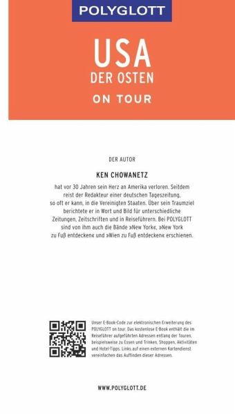 Mit dem POLYGLOTT on tour USA - Der Osten lässt sich der Herzschlag der amerikanischen Ost-Staaten erspüren. Der Autor Ken Chowanetz führt in 16 ausgeklügelten Touren durch die Vielseitigkeit der verschiedenen Staaten und lässt Sie Typisches, Besonderes und Eigenheiten entdecken. Lernen Sie den Osten der USA hautnah kennen. Begeben Sie sich in die Berkshire Hills und wandern Sie durch den Shenandoah National Park, Erkunden Sie Plantagen und Herrenhäuser und probieren Sie Lobster in Neuengland. Oder spazieren Sie lieber bei Sonnenuntergang auf Key West zwischen den Meeren? Sicher können Sie sich dem besonderen Flair der Staaten bald nicht mehr entziehen. Dank individueller Tipps können Sie ausprobieren und eintauchen, mitten hinein ins US-amerikanische Leben.