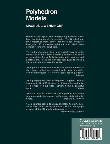 Models of the regular and semiregular polyhedral solids have fascinated people for centuries. The Greeks knew the simplest of them. Since then the range of figures has grown; 75 are known today and are called, more generally, 'uniform' polyhedra. The author describes simply and carefully how to make models of all the known uniform polyhedra and some of the stellated forms. Fully illustrated with drawings and photographs, this is the first practical guide to making these intricate and beautiful solids.