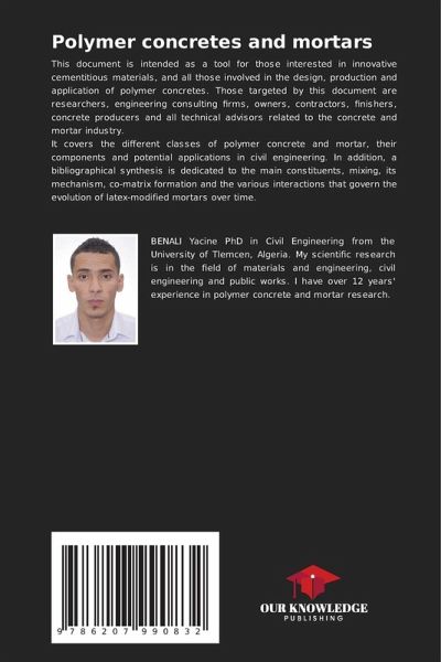 This document is intended as a tool for those interested in innovative cementitious materials, and all those involved in the design, production and application of polymer concretes. Those targeted by this document are researchers, engineering consulting firms, owners, contractors, finishers, concrete producers and all technical advisors related to the concrete and mortar industry.It covers the different classes of polymer concrete and mortar, their components and potential applications in civil engineering. In addition, a bibliographical synthesis is dedicated to the main constituents, mixing, its mechanism, co-matrix formation and the various interactions that govern the evolution of latex-modified mortars over time.