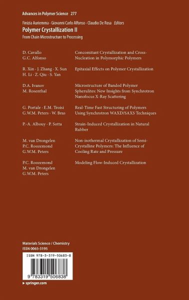 The series Advances in Polymer Science presents critical reviews of the present and future trends in polymer and biopolymer science. It covers all areas of research in polymer and biopolymer science including chemistry, physical chemistry, physics, material science. The thematic volumes are addressed to scientists, whether at universities or in industry, who wish to keep abreast of the important advances in the covered topics. Advances in Polymer Science enjoys a longstanding tradition and good reputation in its community. Each volume is dedicated to a current topic, and each review critically surveys one aspect of that topic, to place it within the context of the volume. The volumes typically summarize the significant developments of the last 5 to 10 years and discuss them critically, presenting selected examples, explaining and illustrating the important principles, and bringing together many important references of primary literature. On that basis, future research directions in thearea can be discussed. Advances in Polymer Science volumes thus are important references for every polymer scientist, as well as for other scientists interested in polymer science - as an introduction to a neighboring field, or as a compilation of detailed information for the specialist. Review articles for the individual volumes are invited by the volume editors. Single contributions can be specially commissioned. Readership: Polymer scientists, or scientists in related fields interested in polymer and biopolymer science, at universities or in industry, graduate students