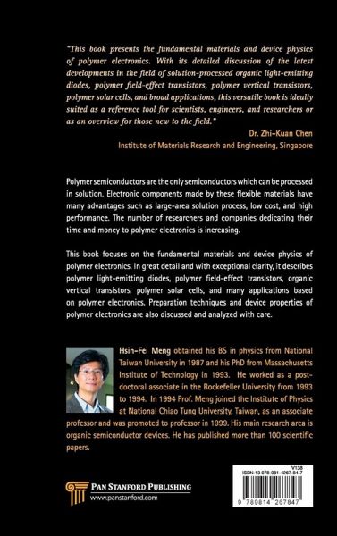 Polymer semiconductor is the only semiconductor that can be processed in solution. Electronics made by these flexible materials have many advantages such as large-area solution process, low cost, and high performance. Researchers and companies are increasingly dedicating time and money in polymer electronics. This book focuses on the fundamental materials and device physics of polymer electronics. It describes polymer light-emitting diodes, polymer field-effect transistors, organic vertical transistors, polymer solar cells, and many applications based on polymer electronics. The book also discusses and analyzes in detail preparation techniques and device properties of polymer electronics.