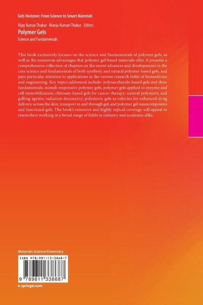 Brea Gum Gel Capacity.- An Overview on Polymer Gels Applied to Enzyme and Cell Immobilization.- Xylan-Based Gels and Their Fundamentals.- Stimuli-Responsive Polymer Gels for Protein Delivery.- Polysaccharide-Based Polymergels.- Chitosan Based Gels for Cancer Therapy.- Natural Polymeric and Gelling Agents.- Radiation Dosimetry - A Different Prospective of Polymer Gel.- Polymeric Gels: Vehicles for Enhanced Drug Delivery Across Skin.- Graphene Oxide - Polymer Gels.- Transport in and Through Gel.- Strategizing Advance Application of Polymer Gels by Incorporation of Fillers.- Polymer Gels: New Materials for the Future.- Polymer Gel-Clay (Nano)Composites.- Functional Gels.- Molecular Distinction Between Structures of Nanoporous Siloxane Polymers.- Stimuli Responsive Polysaccharides Based Gels: Fundamental and Pharmaceutical Aspects.- Polymer Gel for Islet Encapsulation for Diabetes Therapy.