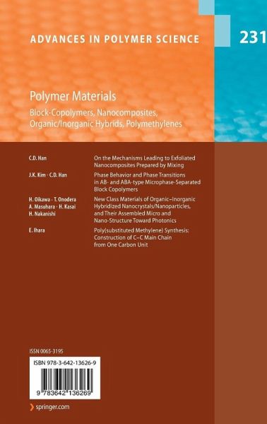 -On the Mechanisms Leading to Exfoliated Nanocomposites Prepared by MixingBy C. D. Han-Phase Behavior and Phase Transitions in AB- and ABA-type Microphase-Separated Block CopolymersBy J. K. Kim, C. D. Han-New Class Materials of Organic-Inorganic Hybridized Nanocrystals/Nanoparticles, and Their Assembled MicroandNano-Structure Toward PhotonicsBy H. Oikawa, T. Onodera, A. Masuhara, H. Kasai, H. Nakanishi-Poly(substituted Methylene) Synthesis: Construction of C-C Main Chainfrom One Carbon UnitBy E. Ihara