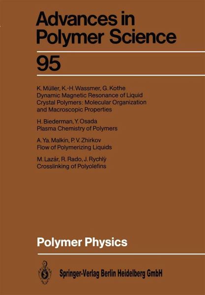 Contents: K. Müller, Stuttgart; K.-H. Wassmer, Ludwigshafen, G. Kothe, Stuttgart, FRG: Dynamic Magnetic Resonance of Liquid Crystal Polymers: Molecular Organization and Macroscopic PropertiesH. Biederman, Prague, CSSR, Y. Osada, Mito/Japan: Plasma Chemistry of PolymersA.Ya. Malkin, P.V. Zhirkov, Moscow, USSR: Flow of Polymerizing LiquidsM. Lazár, R. Rado, J. Rychly, Bratislava, CSSR: Crosslinking of PolyolefinsK. Müller, Stuttgart, K.-H. Wassmer, Ludwigshafen, G. Kothe, Stuttgart, BRD: Dynamische NMR von flüssigkristallinen Polymeren: Molekulare Organisation und makroskopische EigenschaftenH. Biederman, Prague, CSFR, Y. Osada, Mito, Japan: Plasma-Chemie von PolymerenA.Ya. Malkin, P.V. Zhirkov, Moskau, UdSSR: Fließverhalten polymerisierender FlüssigkeitenM. Lazár, R. Rado, J. Rychly, Bratislava, CSSR: Vernetzung von Polyolefinen