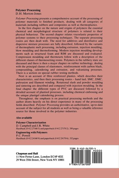 It can be stated with some justification that polymers, because of their mainly synthetic origins, are important because of their applications, perhaps more than in the case of more familiar and conventional materials such as metals and wood, which would exist apart from their use in human activities. The majority of polymers have been synthesized under the impetus of requirements for new and improved properties. The preparative routes to new polymers and blends, and the exploration of their structures and properties constitute absorbing subjects for study, but it is the final application of these materials in real, commercial products that provides the driving force for such developments. In recent years a number of excellent books have appeared which deal with the chemistry, structure, properties and engineering aspects of polymers. The processing of polymers, as products of the chemical industry, into engineering and consumer goods has received much less attention. There are some valuable texts for individual processes, especially the extrusion and injection moulding of thermoplastics, but others are less well served. This book provided a review of all the important processing routes for transforming polymers into products.