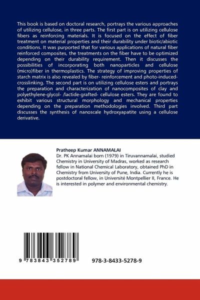 This book is based on doctoral research, portrays the various approaches of utilizing cellulose, in three parts. The first part is on utilizing cellulose fibers as reinforcing materials. It is focused on the effect of fiber treatment on material properties and their durability under biotic/abiotic conditions. It was purported that for various applications of natural fiber reinforced composites, the treatments on the fiber have to be optimized depending on their durability requirement. Then it discusses the possibilities of incorporating both nanoparticles and cellulose (micro)fiber in thermoplastics. The strategy of improving properties of starch matrix is also revealed by fiber- reinforcement and photo-induced-crosslinking. The second part is on utilizing cellulose esters and portrays the preparation and characterization of nanocomposites of clay and polyethylene-glycol- /lactide-grafted- cellulose esters. They are found to exhibit various structural morphology and mechanical properties depending on the preparation methodologies involved. Third part discusses the synthesis of nanoscale hydroxyapatite using a cellulose derivative.