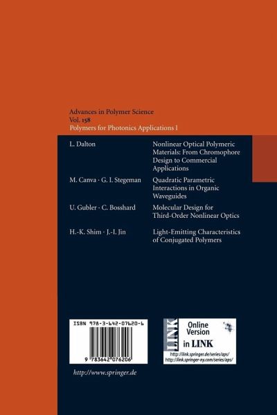The future of information technology requires ultra-high speed processing and large data storage capacity. Since the electronics technology using semi-cond- tors and inorganic materials is about to reach its limits,much current research is focused on utilizing much faster photons than electrons, namely photonics. To achieve any significant effect on the actual use of the science of photonics,dev- opments of more efficient photonics materials,better optical property evaluations, manufacture of devices for system applications,etc. are the subjects which need to be explored. In particular,the development of photonics materials stands in the forefront of research as this constitutes the most pertinent factor with regard to the development of ultra-high speed and large capacity information processing. In this respect, there has been continuous research on photo-responsive materials through molecular structure design and architecture and the results so far are very promising as functions and performances are beginning to realize their high expectations. The two special volumes Polymers for Photonics Applications give authori- tive and critical reviews on up-to-date activities in various fields of photonic po- mers including their promising applications. Seven articles have been contributed by internationally recognized and they deal with,polymers for second- and thi- order nonlinear optics,quadratic parametric interactions in polymer waveguides, electroluminescent polymers as light sources,photoreflective polymers for ho- graphic information storage,and highly efficient two-photon absorbing organics and polymers.