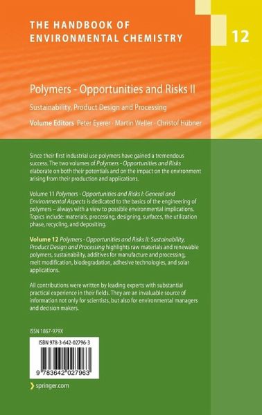Since their first industrial use polymers have gained a tremendous success. The two volumes of "Polymers - Opportunities and Risks" elaborate on both their potentials and on the impact on the environment arising from their production and applications.Volume 11 "Polymers - Opportunities and Risks I: General and Environmental Aspects" is dedicated to the basics of the engineering of polymers - always with a view to possible environmental implications. Topics include: materials, processing, designing, surfaces, the utilization phase, recycling, and depositing.Volume 12 "Polymers - Opportunities and Risks II: Sustainability, Product Design and Processing" highlights raw materials and renewable polymers, sustainability, additives for manufacture and processing, melt modification, biodegradation, adhesive technologies, and solar applications.All contributions were written by leading experts with substantial practical experience in their fields. They are an invaluable source of information not only for scientists, but also for environmental managers and decision makers.