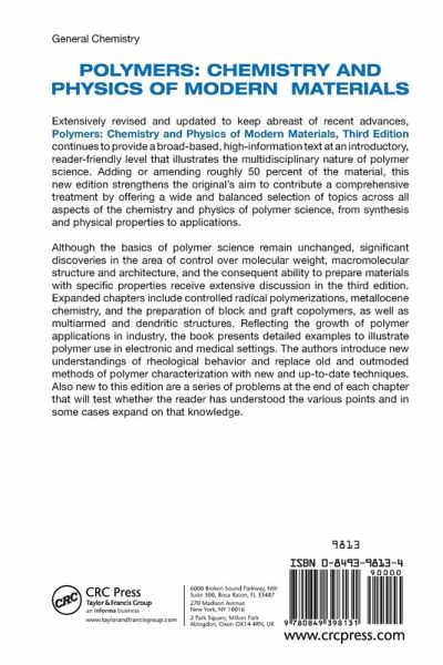 Extensively revised and updated to keep abreast of recent advances, Polymers: Chemistry and Physics of Modern Materials, Third Edition continues to provide a broad-based, high-information text at an introductory, reader-friendly level that illustrates the multidisciplinary nature of polymer science. Adding or amending roughly 50% of the material, this new edition strengthens its aim to contribute a comprehensive treatment by offering a wide and balanced selection of topics across all aspects of the chemistry and physics of polymer science, from synthesis and physical properties to applications.