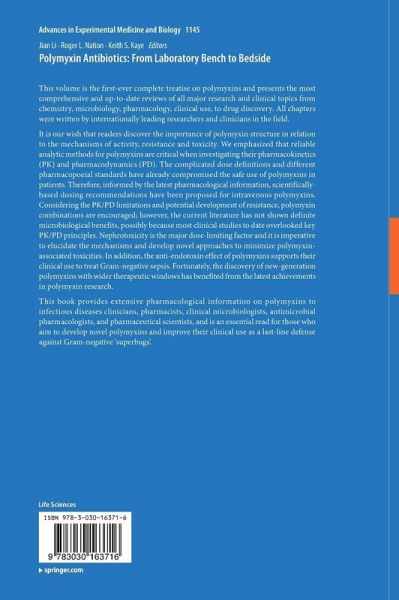 This book provides extensive pharmacological information on polymyxins to infectious diseases clinicians, pharmacists, clinical microbiologists, antimicrobial pharmacologists, and pharmaceutical scientists, and is an essential read for those who aim to develop novel polymyxins and improve their clinical use as a last-line defense against Gram-negative 'superbugs'.