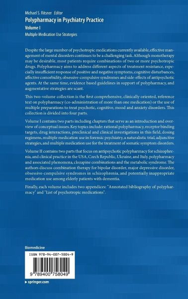 "This is part of a two-volume set that is the first comprehensive, clinically oriented reference that looks at the evidence regarding the use of multiple medications in the treatment of a variety of mental illnesses. ... should be read by anyone involved in the pharmacological management of psychiatric illnesses." (Michael Easton, Doody's Book Reviews, July, 2013)