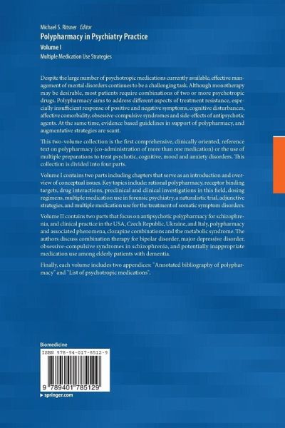 "This is part of a two-volume set that is the first comprehensive, clinically oriented reference that looks at the evidence regarding the use of multiple medications in the treatment of a variety of mental illnesses. ... should be read by anyone involved in the pharmacological management of psychiatric illnesses." (Michael Easton, Doody's Book Reviews, July, 2013)