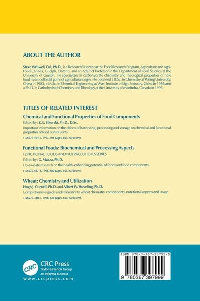 Yellow Mustard Gum. Introduction. Occurrence and Extraction Process of YMG. Chemical Composition, Structures and Molecular Weight of YMG. Physical Properties of YMG. Synergistic Interactions with Galactomannans. Applications of YMG. Flaxseed Gum. Introduction. Occurrence and Extraction Process of Flaxseed Gum. Structures and Chemical Properties of Flaxseed Gum. Physical Properties of Flaxseed Gum. Applications of Flaxseed Gum. Cereal Non-Starch Polysaccharides I: 1-3(1-4)-ß-D-Glucans. Introduction. Solubility, Extraction and Purification. Structure and Chemistry of ß-D-Glucan. Physical Properties: Solubility, Conformation and Rheological Properties. Applications. Cereal Non-Starch Polysaccharides II: Pentosans/Arabinoxylans. Introduction. Processing and Extraction Pentosans. Chemical Structure and Molecular Characteristics of Arabinoxylans. Physical Properties. Functionality and Applications. Other Sources: Psyllium, Fenugreek, Maize, Soybean. Resources: Psyllium, Fenugreek, Soy Bean and Corn Fiber Gums.