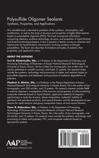Yuri N. Khakimullin, DSc, is professor in the Department of Chemistry and Processing Technology of Elastomers at Kazan National Research Technological University in Kazan, Russia. His research areas include the synthesis, technology, and processing of rubber and sealants based on polysulfide oligomers and elastomers, and processes of radiation degradation of polymers. Vladimir S. Minkin, DSc, is professor in the Physical Department at Kazan National Research Technological University in Kazan, Russia. He is the author of 4 monographs, over 200 articles, and 12 patents. His research interests include NMR in reactive oligomer, investigation of the structure and properties of sulfur-containing composite materials based on liquid thiokols; application methods of magnetic spectroscopy to study the structure, phase composition, molecular mobility of petroleum and petroleum products, and natural bitumen; and the development of new devices for rapid analysis and group composition heavy oil and natural bitumen. Timur Deberdeev, DSc, is a professor in the Department of Processing Technology of Polymers and Composite Materials at Kazan National Research Technological University in Kazan, Russia. He is the author of 2 monographs, over 60 articles, and 13 patents. His research areas include the synthesis, technology, and processing of rubber and polymers, PVC, and composite materials based on epoxyamine systems. Gennady E. Zaikov, DSc, is head of the Polymer Division at the N. M. Emanuel Institute of Biochemical Physics, Russian Academy of Sciences, Moscow, Russia, and professor at Moscow State Academy of Fine Chemical Technology, Russia, as well as professor at Kazan National Research Technological University, Kazan, Russia. He is also a prolific author, researcher, and lecturer. He has received several awards for his work, including the Russian Federation Scholarship for Outstanding Scientists. He has been a member of many professional organizations and on the editorial boards of many international science journals.