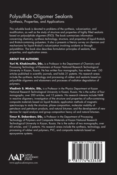 Yuri N. Khakimullin, DSc, is professor in the Department of Chemistry and Processing Technology of Elastomers at Kazan National Research Technological University in Kazan, Russia. His research areas include the synthesis, technology, and processing of rubber and sealants based on polysulfide oligomers and elastomers, and processes of radiation degradation of polymers. Vladimir S. Minkin, DSc, is professor in the Physical Department at Kazan National Research Technological University in Kazan, Russia. He is the author of 4 monographs, over 200 articles, and 12 patents. His research interests include NMR in reactive oligomer, investigation of the structure and properties of sulfur-containing composite materials based on liquid thiokols; application methods of magnetic spectroscopy to study the structure, phase composition, molecular mobility of petroleum and petroleum products, and natural bitumen; and the development of new devices for rapid analysis and group composition heavy oil and natural bitumen. Timur Deberdeev, DSc, is a professor in the Department of Processing Technology of Polymers and Composite Materials at Kazan National Research Technological University in Kazan, Russia. He is the author of 2 monographs, over 60 articles, and 13 patents. His research areas include the synthesis, technology, and processing of rubber and polymers, PVC, and composite materials based on epoxyamine systems. Gennady E. Zaikov, DSc, is head of the Polymer Division at the N. M. Emanuel Institute of Biochemical Physics, Russian Academy of Sciences, Moscow, Russia, and professor at Moscow State Academy of Fine Chemical Technology, Russia, as well as professor at Kazan National Research Technological University, Kazan, Russia. He is also a prolific author, researcher, and lecturer. He has received several awards for his work, including the Russian Federation Scholarship for Outstanding Scientists. He has been a member of many professional organizations and on the editorial boards of many international science journals.