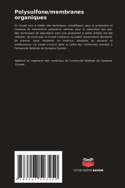 Ce travail vise à établir des techniques scientifiques pour la production et l'analyse de membranes polymères utilisées pour la séparation des gaz. Des techniques de laboratoire avec une production à petite échelle ont été utilisées, de sorte que ce travail s'adresse au public universitaire (étudiants de premier cycle, étudiants en maîtrise, étudiants en doctorat et professeurs). Ce travail s'inscrit dans le cadre des recherches menées à l'Université fédérale de Campina Grande.
