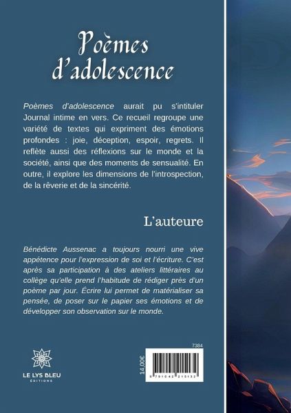 Poèmes d'adolescence aurait pu s'intituler Journal intime en vers. Ce recueil regroupe une variété de textes qui expriment des émotions profondes: joie, déception, espoir, regrets. Il reflète aussi des réflexions sur le monde et la société, ainsi que des moments de sensualité. En outre, il explore les dimensions de l'introspection, de la rêverie et de la sincérité.
