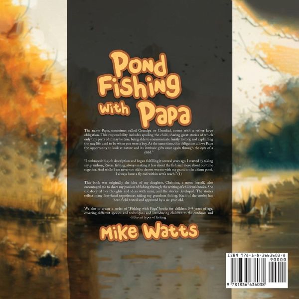 Pond Fishing with Papa by Mike Watts is a heartwarming journey into the wonders of fishing, family, and nature, seen through the eyes of a child captivated by their grandfather's tales. Join Papa and his young fishing buddies as they set off before dawn, rods in hand, in search of new adventures and the thrill of the catch. Each page is filled with the joy of a child's first experiences-from the tickle of "minnow dust" on tiny fingers to the suspense of watching a bobber dip below the surface. Papa shares his wisdom, storytelling, and love for nature, helping his grandchildren discover that fishing is about so much more than just fish. Through playful interactions with a wise blue heron and bullfrogs belching by the pond, Pond Fishing with Papa brings the outdoors to life, reminding us all to listen to nature's quiet lessons and savor the time spent with loved ones. Perfect for families who treasure outdoor adventures, Pond Fishing with Papa is a celebration of connection, the tradition of fishing, and the magic of childhood. Whether you're an avid angler or simply enjoy a good story, this beautifully illustrated tale will inspire readers young and old to get outside, cast a line, and make family memories that last a lifetime.
