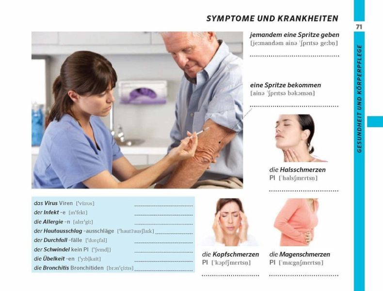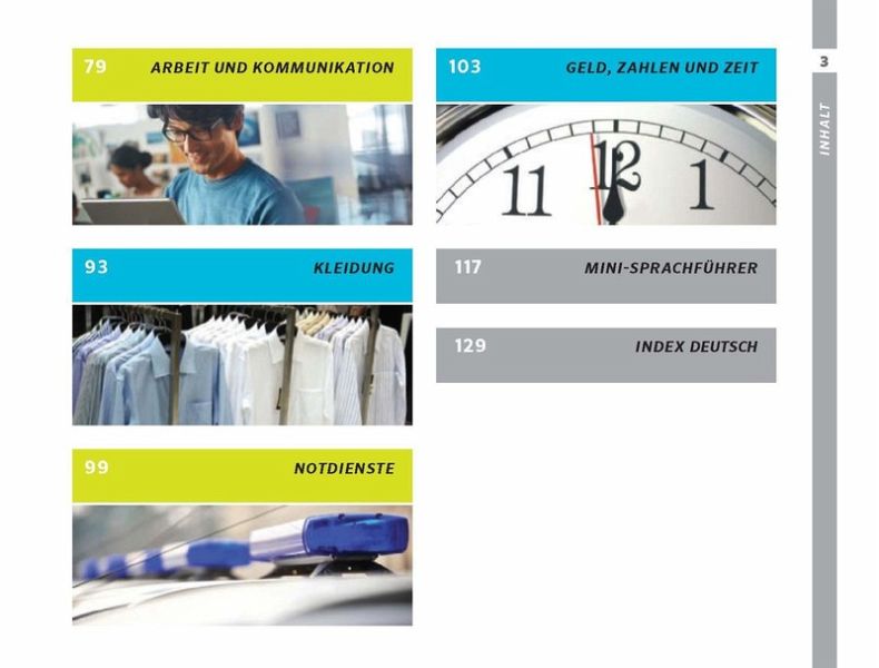 Noch nie war Deutsch als Fremdsprache so anschaulich! Der wichtigste Wortschatz zu den Themen des Alltags: Familie & Freundschaft, Wohnung und Haushalt - Straße & Schiene - Essen und Trinken - Gesundheit & Körperpflege - Arbeit und Kommunikation - Kleidung - Notdienste - Geld, Zahlen & Zeit. Richtig aussprechen: Mit Lautschrift zu jedem deutschen Wort. Schnell einprägen: Mit Schreiblinie für Übersetzungen in die Muttersprache. Gesehen und einfach gemerkt: Durch Bilder bleibt der Wortschatz besser haften.