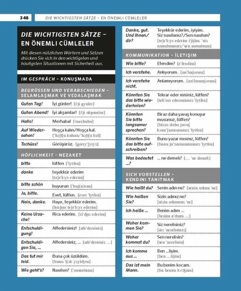 Alle türkischen Wörter, die Sie brauchen: 16.000 Begriffe, Vokabeln und Redewendungen auf Deutsch und TürkischMit den wichtigsten Themen wie Reise, Essen und Trinken, Einkaufen, Arbeit, Schule und Freizeit.Kulturelle Einblicke: Mit zahlreichen landestypischen Begriffen.Gesehen und einfach gemerkt: Durch Bilder bleibt der Wortschatz besser haften.Leicht gefunden: Im zweisprachigen Register können Sie schnell das richtige Wort nachschlagen, ob unterwegs, zu Hause, im Urlaub oder auf Reisen.Mit Scan2Learn-App zur richtigen Aussprache: Alle türkischen und deutschen Wörter zum Anhören auf dem Smartphone oder Tablet.Praktisch für Urlaub und Reisen oder einfach zum Nachschlagen.Niveau A1-B2: Erste Grundkenntnisse bis fortgeschrittene Sprachkenntnisse