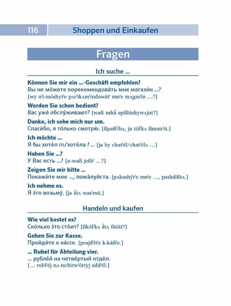 Alles für die Reise Mit den wichtigsten 5.000 Wörtern und Sätzen, die Sie für Ihre Reise brauchen.Die wichtigsten Themen für den Urlaub.Mit Reisewörterbuch Russisch - Deutsch und Deutsch - Russisch.Passt in jede Strand- und Hosentasche.