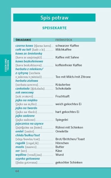 Die BasicsUnterwegsEssen und TrinkenEinkaufenÜbernachtenIm NotfallWörterbuch (Polnisch-Deutsch / Deutsch-Polnisch)