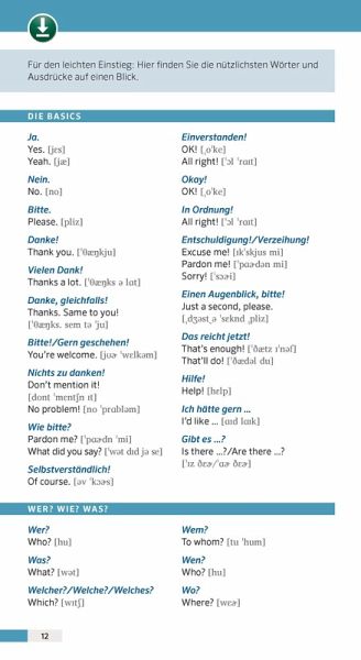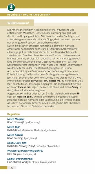 Niemals sprachlos: Finden Sie im Sprachführer den passenden Satz für jede Situation.Verstehen und verstanden werden: Mit dem Wörterbuch Amerikanisch - Deutsch und Deutsch - Amerikanisch kommen Sie überall sicher durch.Wie die Einheimischen: Mit Insider-Tipps verstehen Sie Land und Leute besser.Abseits der Touristenpfade: Die integrierte Speisekarte sorgt dafür, dass Sie in jedem Lokal zurecht kommen.Richtig aussprechen: Mit den wichtigsten Sätzen zum Anhören als Download.