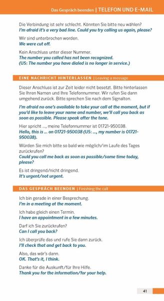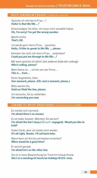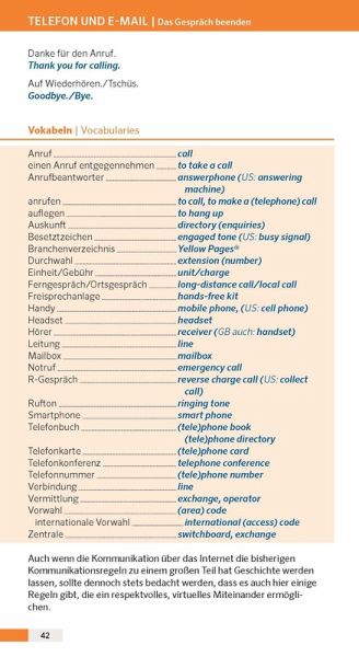 Topaktueller Wortschatz und Formulierungshilfen für die wichtigsten Themen wie: Präsentieren, Meetings, am Telefon.Mit Business-Knigge für Dos and Don'ts in den 10 wichtigsten Handelsnationen: China, Frankreich, Italien, Niederlande, Polen, Russland, Spanien, Schweden, Tschechien, Türkei.Mit Wörterbuch Englisch - Deutsch und Deutsch - Englisch.