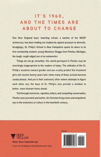 "In the inner sanctum of an elite boarding school, boys test their boundaries and class when they welcome an outsider. In 1960, St. Philip's School, a famously exclusive boys boarding school, grudgingly admits its first scholarship student. As the nursery to America's aristocracy, St. Philip's has no notion what to expect of 13-year-old Woodrow Scaggs, the white son of an autoworker. Will he even eat with knife and fork? Woodrow believes that if any boy calls him a certain name, he must fight him to the death. Of course, he is called that name on his first night. In Pontiac, boys equally stupid and equally wonderful in spite of class differences, weave their own lost-boys culture and form life-lasting bonds"--