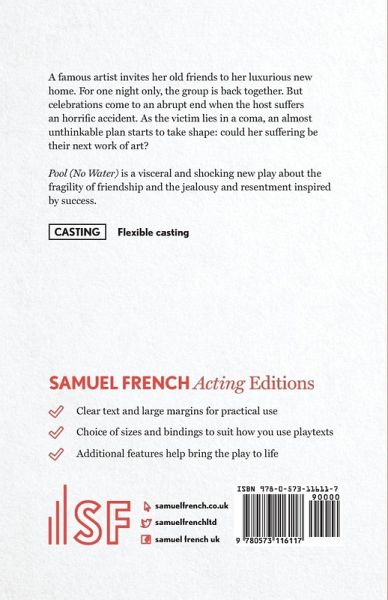 A famous artist invites her old friends to her luxurious new home. For one night only, the group is back together. But celebrations come to an abrupt end when the host suffers an horrific accident. As the victim lies in a coma, an almost unthinkable plan starts to take shape: could her suffering be their next work of art? Pool (No Water) is a visceral and shocking new play about the fragility of friendship and the jealousy and resentment inspired by success.