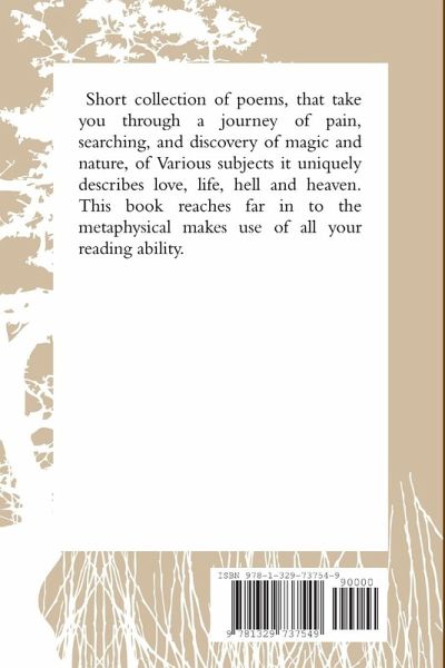 A Short collection of poems, that take you through a journey of pain, searching, and discovery of magic and nature.Of Various subjects it uniquely describes love, life, hell and heaven. This book reaches far in to the metaphysical makes use of all your reading ability.