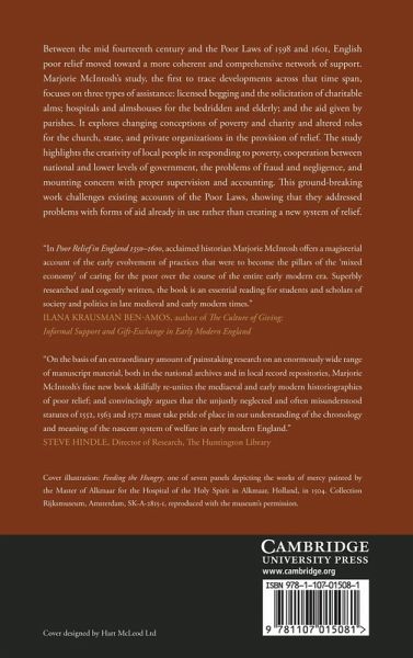 Between the mid-fourteenth century and the Poor Laws of 1598 and 1601, English poor relief moved toward a more coherent and comprehensive network of support. Marjorie McIntosh's study, the first to trace developments across that time span, focuses on three types of assistance: licensed begging and the solicitation of charitable alms; hospitals and almshouses for the bedridden and elderly; and the aid given by parishes. It explores changing conceptions of poverty and charity and altered roles for the church, state and private organizations in the provision of relief. The study highlights the creativity of local people in responding to poverty, cooperation between national levels of government, the problems of fraud and negligence, and mounting concern with proper supervision and accounting. This ground-breaking work challenges existing accounts of the Poor Laws, showing that they addressed problems with forms of aid already in use rather than creating a new system of relief.