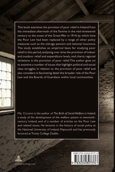 This book examines the provision of poor relief in Ireland from the immediate aftermath of the Famine in the mid-nineteenth century to the onset of the Great War in 1914, by which time the Poor Law had been replaced by a range of other policy measures such as the old-age pension and national insurance. The study establishes an empirical basis for studying poor relief in this period, analysing over time the provision of indoor and outdoor relief and expenditure levels, and charts regional variations in the provision of poor relief. The author goes on to examine a number of issues that highlight political and social class struggles in relation to the provision of poor relief and also considers in fascinating detail the broader role of the Poor Law and the Boards of Guardians within local communities.