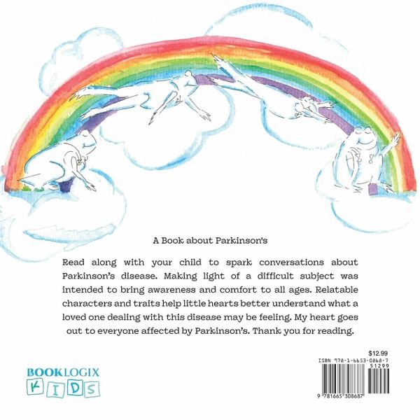 Read along with your child to spark conversations about Parkinson's disease. Making light of a difficult subject was intended to bring awareness and comfort to all ages. Relatable characters and traits help little hearts better understand what a loved one dealing with this disease may be feeling. Simple text and comparisons encourage a whimsical way for kids to find comfort over concern when in the company of someone with Parkinson's. Understanding that Parkinson's disease is much more than "shaking" is important for all parties to acknowledge for the sake of their loved ones. This is not an in-depth book on Parkinson's disease but instead a gentle reminder of how your loved one has little control over the changes taking place. Family members often become deflated and distant, accepting your loved one did not choose this version of themselves is important for all to recognize. I encourage additional research and education to avoid the unfortunate consequences of this difficult disease. I send love and patience to everyone affected by Parkinson's disease.