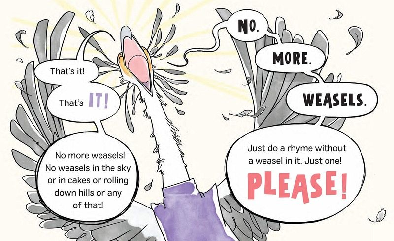 The sensible Secretary Bird wants nothing more than to get on with their job of properly narrating a classic nursery rhyme book. But something is afoot in the orderly land of nursery rhymes . . . a zippy little Weasel has entered the scene! As the Secretary Bird tries to get through the rhymes--from "Little Miss Muffet" to "Jack and Jill"--the Weasel bursts in, throwing everything into a comical tailspin. Can the Secretary Bird put an end to the chaos? In POP! Goes the Nursery Rhyme, influential children's librarian Betsy Bird and acclaimed illustrator Andrea Tsurumi remix beloved nursery rhymes, serving up a classic-in-the-making packed with hilarious surprises that will have little listeners riveted.