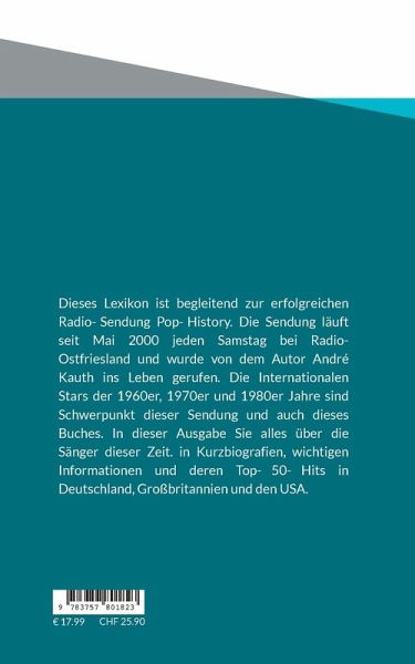 Dieses Lexikon ist begleitend zur erfolgreichen Radio-Sendung Pop-History. Die Sendung läuft seit Mai 2000 jeden Samstag bei Radio-Ostfriesland und wurde von dem Autor André Kauth ins Leben gerufen. Die Internationalen Stars der 1960er, 1970er und 1980er Jahre sind Schwerpunkt dieser Sendung und auch dieses Buches. In dieser Ausgabe Sie alles über die Sänger dieser Zeit. in Kurzbiografien, wichtigen Informationen und deren Top-50-Hits in Deutschland, Großbritannien und den USA.