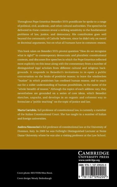 Throughout Pope Emeritus Benedict XVI's pontificate he spoke to a range of political, civil, academic, and other cultural authorities. These speeches reveal a striking sensitivity to the fundamental problems of law, justice, and democracy. He often presented a call for Christians to address issues of public ethics such as life, death, and family from what they have in common with other fellow citizens: reason. This book discusses the speeches in which the Pope Emeritus reflected most explicitly on this issue, along with commentary from distinguished legal scholars. It responds to Benedict's invitation to engage in public discussion on the limits of positivist reason in the domain of law from his address to the Bundestag. Although the topics of each address vary, they are joined by a series of core ideas whereby Benedict sketches, unpacks, and develops an organic and coherent way to formulate a 'public teaching' on justice and law.
