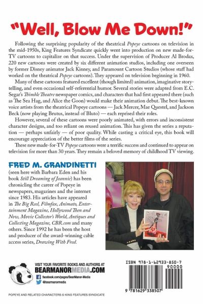 Following the surprising popularity of the theatrical Popeye cartoons on television in the mid-1950s, King Features Syndicate quickly went into production on new made-for-TV cartoons to capitalize on that success. Under the supervision of Producer Al Brodax, 220 new cartoons were created by six different animation studios, including one overseen by former Disney animator Jack Kinney, and Paramount Cartoon Studios (whose staff had worked on the theatrical Popeye cartoons). They appeared on television beginning in 1960. Many of these cartoons featured excellent (though limited) animation, imaginative storytelling, and even occasional self-referential humor. Several stories were adapted from E.C. Segar's Thimble Theatre newspaper comics, and characters that had first appeared there (such as The Sea Hag, and Alice the Goon) would make their animation debut. The best-known voice artists from the theatrical Popeye cartoons - Jack Mercer, Mae Questel, and Jackson Beck (now playing Brutus, instead of Bluto) - each reprised their roles. However, several of these cartoons were poorly animated, with errors and inconsistent character designs, and too reliant on reused animation. This has given the series a reputation - perhaps unfairly - of poor quality. While casting a critical eye, this book will encourage appreciation of the better films of the series. These new made-for-TV Popeye cartoons were a terrific success and continued to appear on television for more than 30 years. They remain a beloved memory of childhood TV viewing.