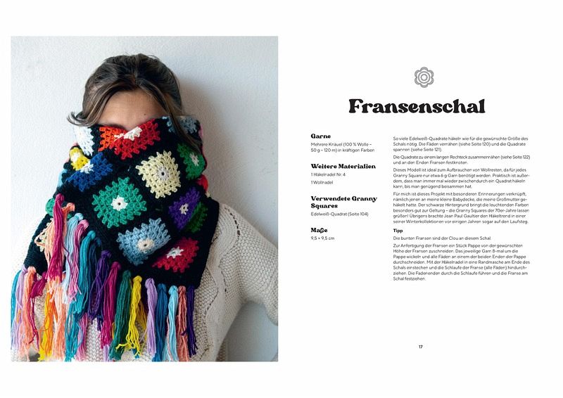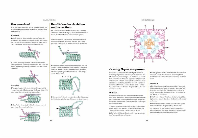 Granny Squares sind wieder absolut angesagt. In poppigen Farben erinnern sie an die bunte Fröhlichkeit der Seventies. Neben Granny-Square-Klassikern wie Plaids und Kissen finden sich hier schicke und angesagte Fashion-Teile wie Tops, Jacken, Pullis, Schals und Taschen sowie Witziges und Nützliches für die eigenen vier Wände. Tolle Ideen zum Aufpimpen von Sneakern, Hoodies und Blusen mit Großmutters Häkelteilchen runden die mehr als 35 Häkelprojekte ab. Dabei wird jeder der 22 Granny Squares genau mit Text und Häkelschrift vorgestellt und alle notwendigen Häkeltechniken mit Step-by-Step-Illustrationen erklärt.