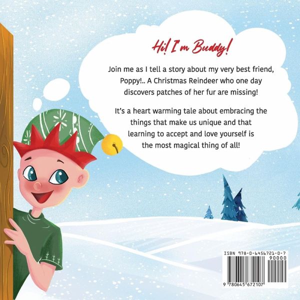 A heart warming story about a Christmas Reindeer with Alopecia who with the help of her new friend "Buddy" learns to accept and love herself and fulfil her Christmas destiny. This is a story for any child who has struggled with feeling a little bit different and teaches about the power of confidence and how our differences are what make us special. All sales from "Poppy The Patchy Reindeer" go to the charity "Bravery Buddies" providing companions dolls to children impacted by medical related hair loss.
