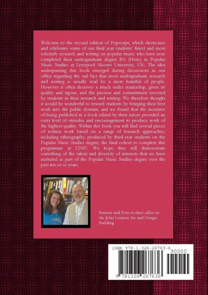 This book showcases and celebrates some of our final year students' finest and most scholarly research and writing on popular music who have now completed their undergraduate degree BA (Hons) in Popular Music Studies at Liverpool Moores University, UK.