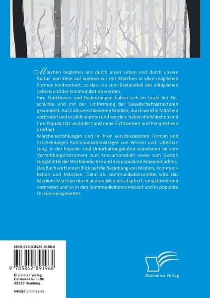 Das Buch wirft einen Blick auf die Beziehung von Medien, Kommunikation und Märchen. Denn als Kommunikationsmittel wird das Medium Märchen durchandere Medien adaptiert, umgeformt und verbreitet und so in den Kommunikationskreislauf und in populäre Diskurse eingebettet.